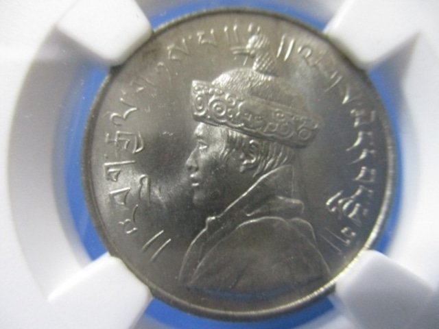 ブータン 1/2ルピー硬貨☆1950年/未使用/ジグメ・ワンチュク王/仏教画/NGC MS65/アンティークコイン
