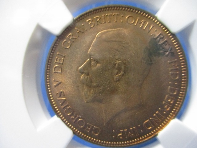イギリス 1ペニー銅貨☆1935年/未使用/ジョージ5世/NGC MS62