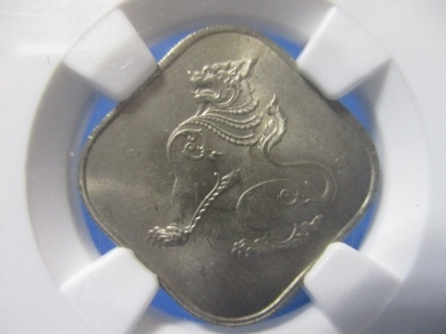 ビルマ(ミャンマー)10ピヤス硬貨☆1965年/未使用/獅子像/NGC MS63/