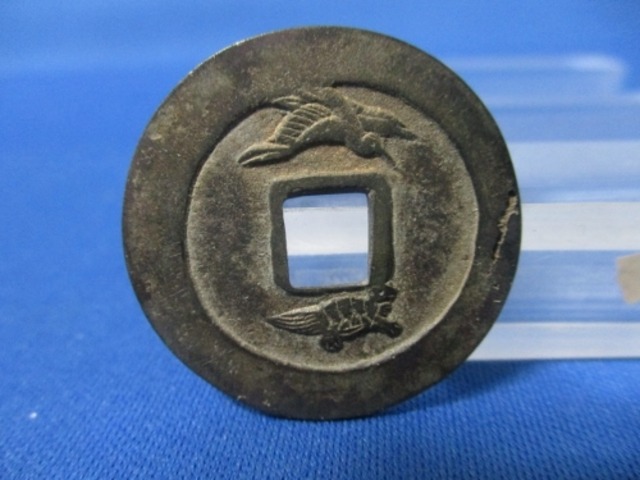 絵銭 穴一銭 三ツ星大黒☆背一、分銅/希少/厚肉/福神銭/大黒様/七福神/お守り銭/縁起銭/玩具銭/厭勝銭/1-157 ◎名称:絵銭 穴一銭 三ツ星大黒 ◎発行国:日本 ◎発行年:江戸時代~ ◎サイズ:直径25.4mm、厚さ3.6mm ◎重さ:11.62g ◎品位:銅 ◎発行枚数:並品 ◎状態:並品/経年による古さと痛みがあります(写真参照) (参考資料) 穴一銭(あないちせん)とは、江戸時代ごろに子どもたちの遊び「穴一」に使われた絵銭の一種です。 穴を掘り、そこに銭を投げ入れて、相手の銭を弾き出すような遊びに用いられたとされています。 ☆絵銭との関係 絵銭は、実際の通貨としてではなく、絵柄や縁起物の図案が刻まれた銭形のものです。穴一銭はその中でも、遊具・玩具としての性格が強いものです。 ☆三ツ星大黒について 三ツ星大黒の特徴は、銭面に描かれた大黒様の顔の前に3つの星(点)が付いています。 数ある大黒系の絵銭の中では、比較的珍しい一品でやや希少価値が高めです。 ※当コインは送料無料です ※写真の10円玉は比較用で商品に含まれておりません ・・・・・・・・・・・・・・ (古物営業法に基づく表記) ・許可を受けている会社の名称:株式会社イー・グローバルマインド ・許可を受けている公安委員会の名称:神奈川県公安委員会 ・許可番号:第451910009497 ・・・・・・・・・・・・・・・