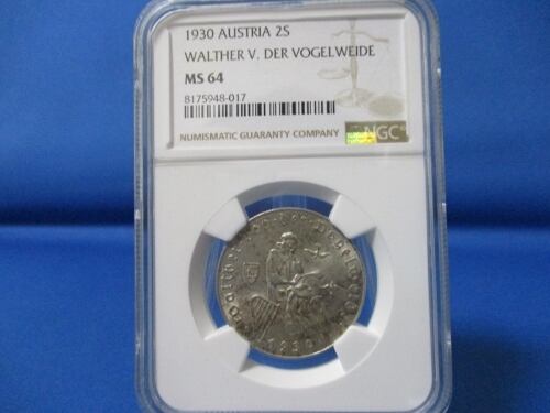 オーストリア・2シリング銀貨☆1930年/未使用/ヴァルター・フォン・デア・フォーゲルヴァイデ/NGC MS64/