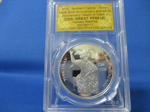 北キプロス 20リラ硬貨☆トークン/2015年/未使用/リストライク/プルーフ/セリム2世