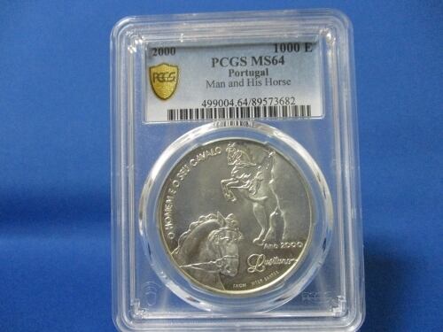ポルトガル 1000エスクード銀貨☆2000年/未使用/PCGS MS64/カヴァロ・ルシターノ