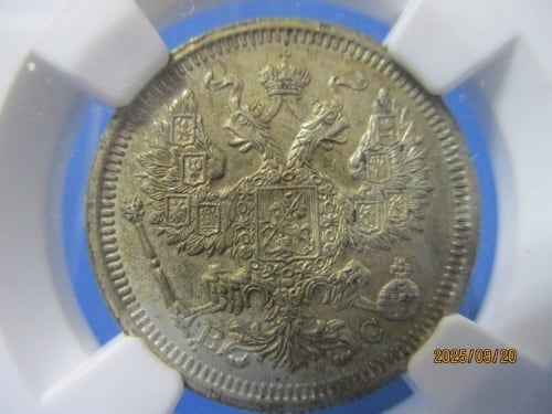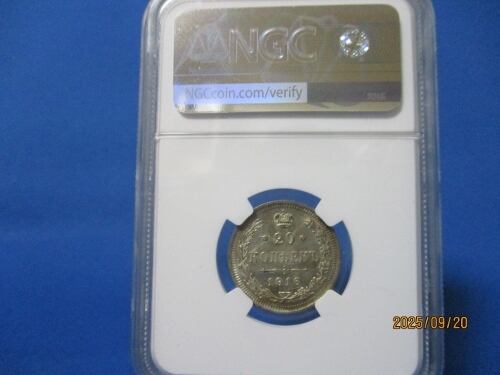 ロシア 20コペイカ銀貨☆1916年/ニコライ二世/双頭の鷲/アンティークコイン/NGC MS62