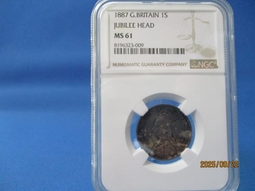 イギリス 1シリング銀貨☆1887年/未使用/ヴィクトリア女王/ジュビリーヘッド/NGC MS61