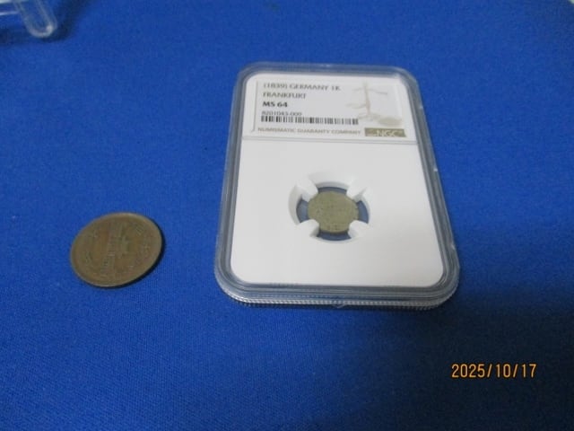 ドイツ諸邦の中でも自由都市フランクフルト最後期の造幣にあたる貴重な発行。