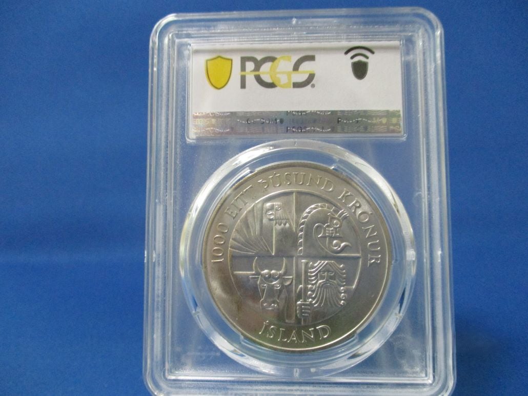 アイスランド 1000クローネ銀貨☆1974年/未使用/4つの精霊/2人のバイキング/PCGS MS66/