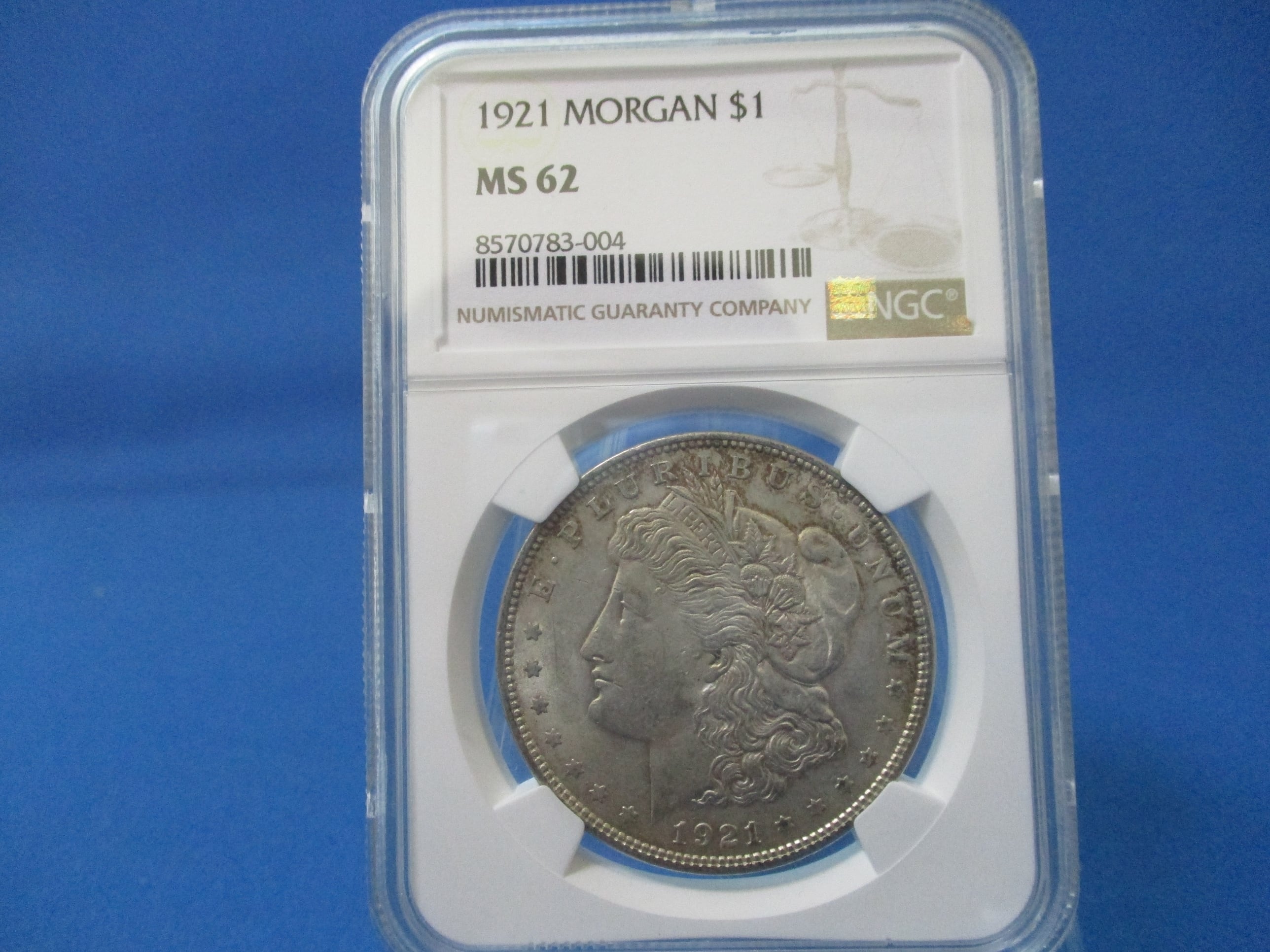 アメリカ モルガン1ドル銀貨☆1921年/未使用/フィラデルフィア造幣/NGC MS62/