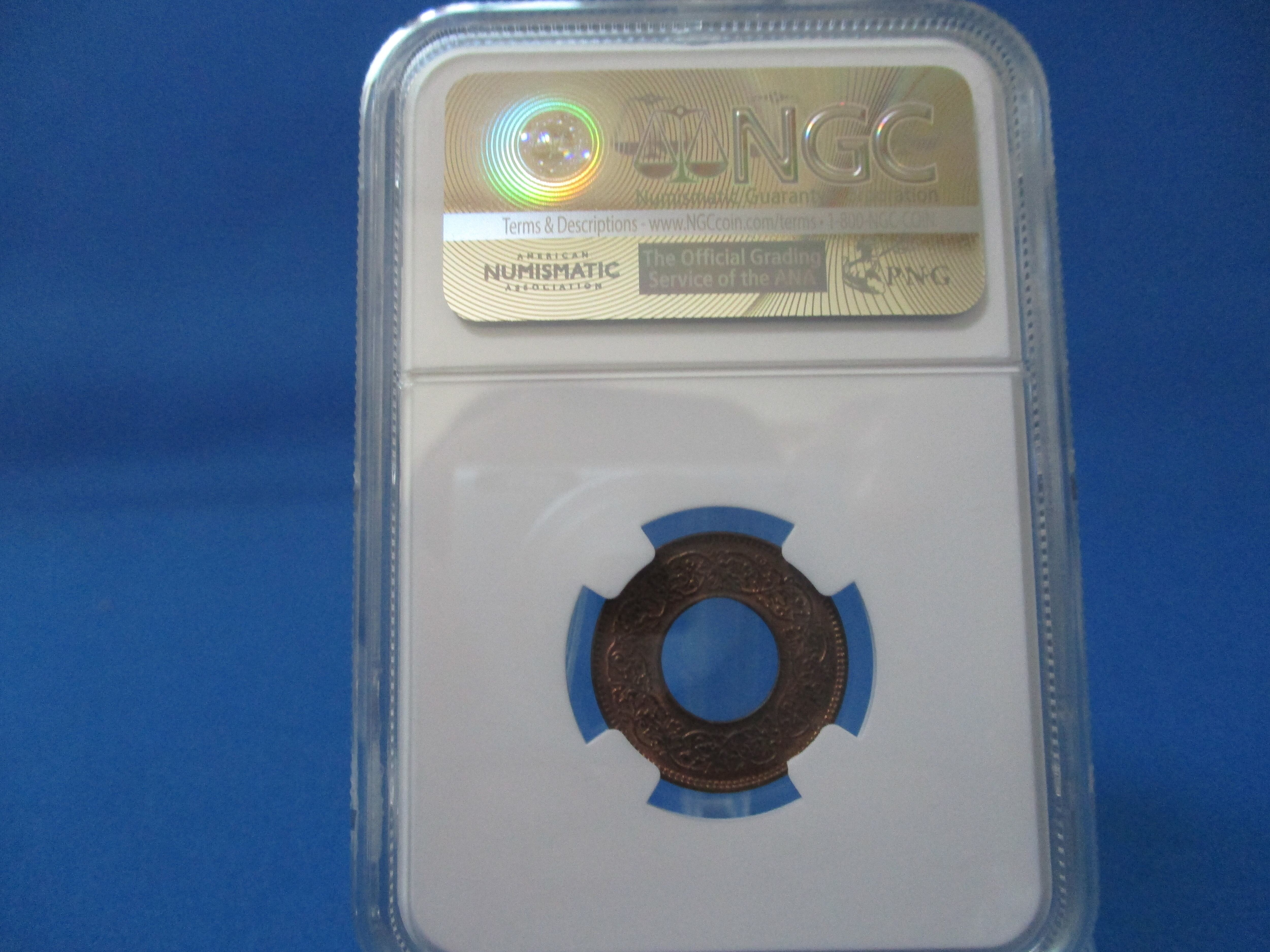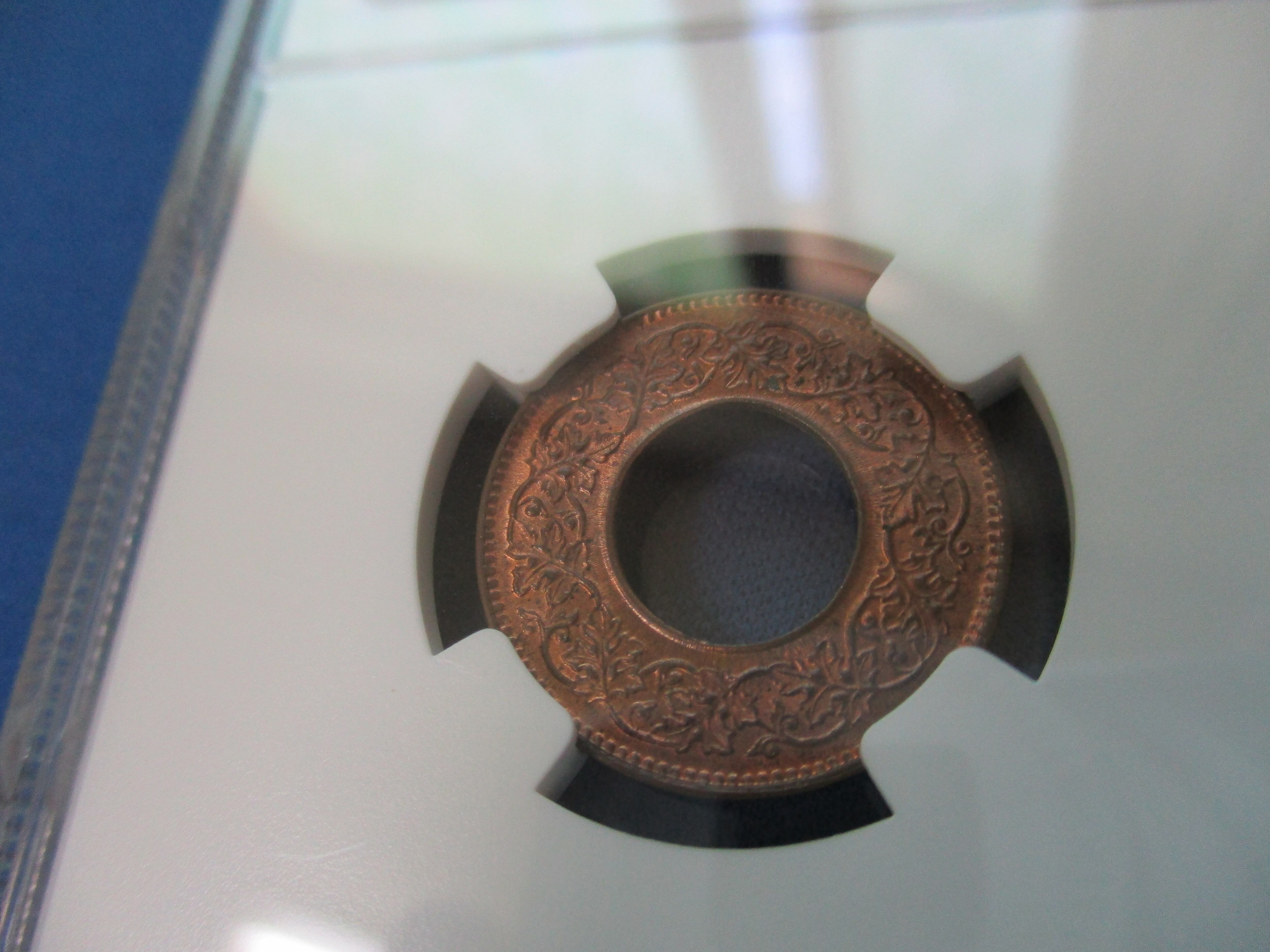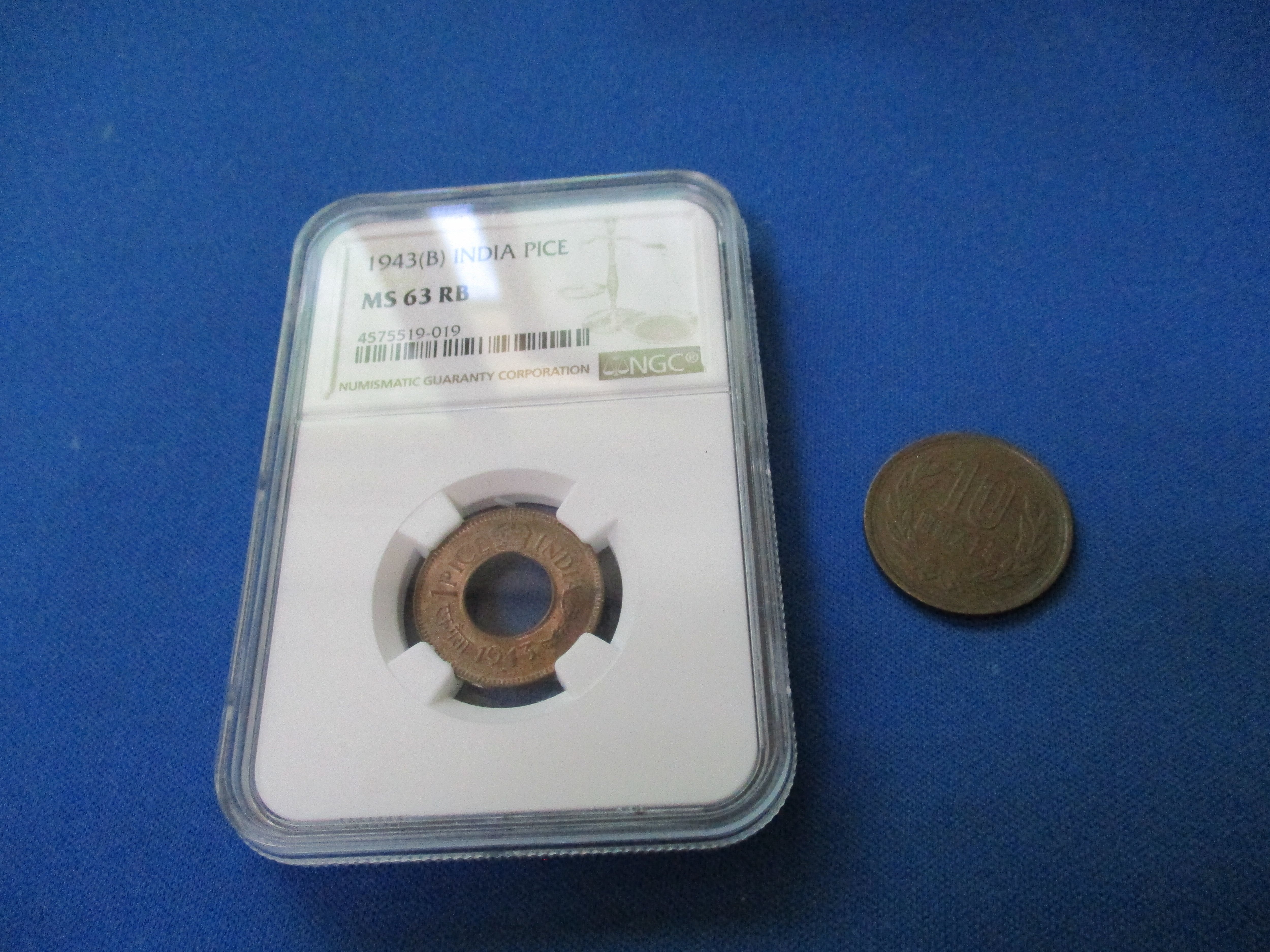 イギリス領インド 1パイス銅貨☆1943年(B)/未使用/NGC MS63RB/本物保証