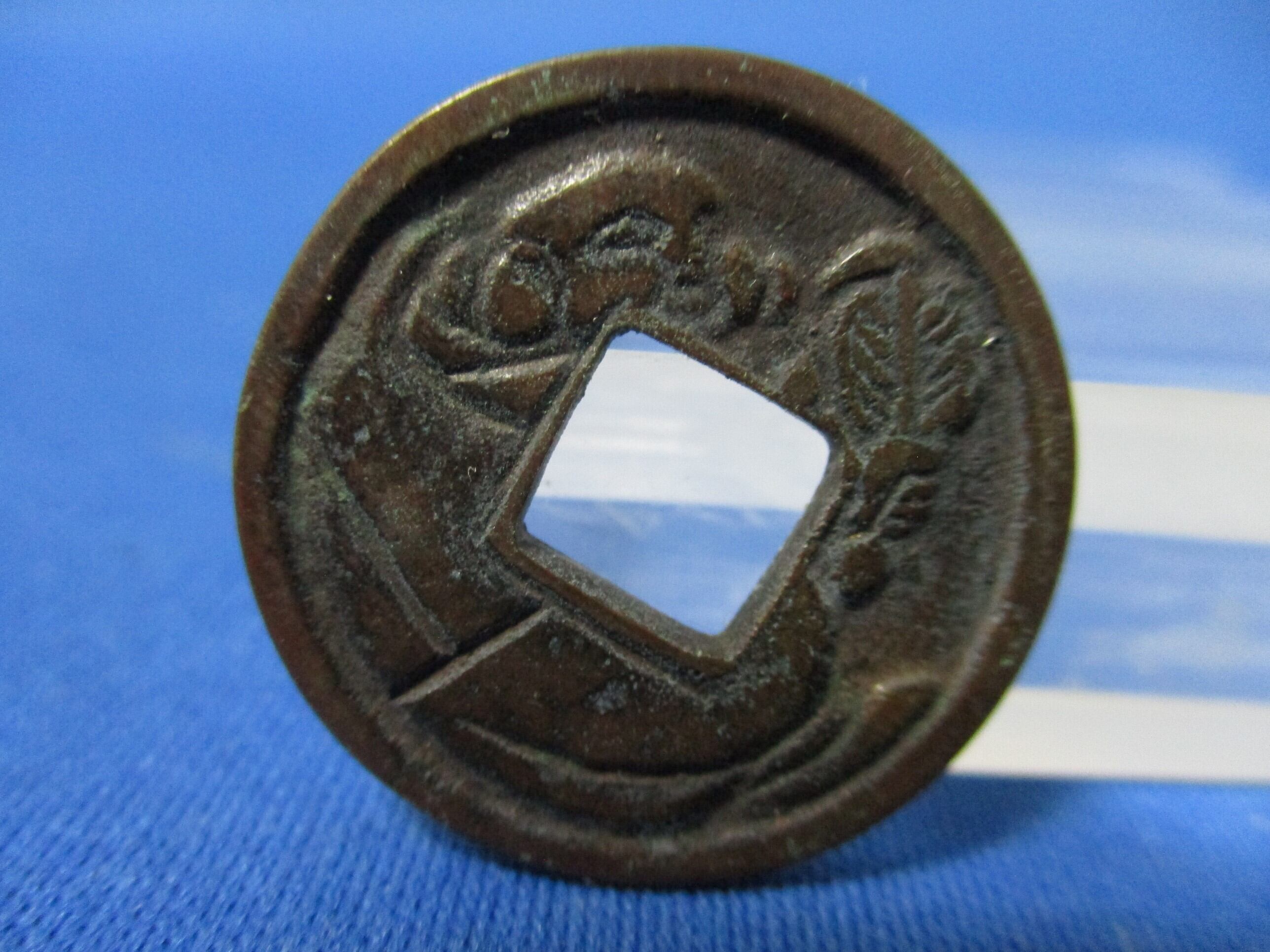 中央に穴が開いた穴銭形式が多く、布袋の像が刻印されます。コレクターアイテムとして取引されております。