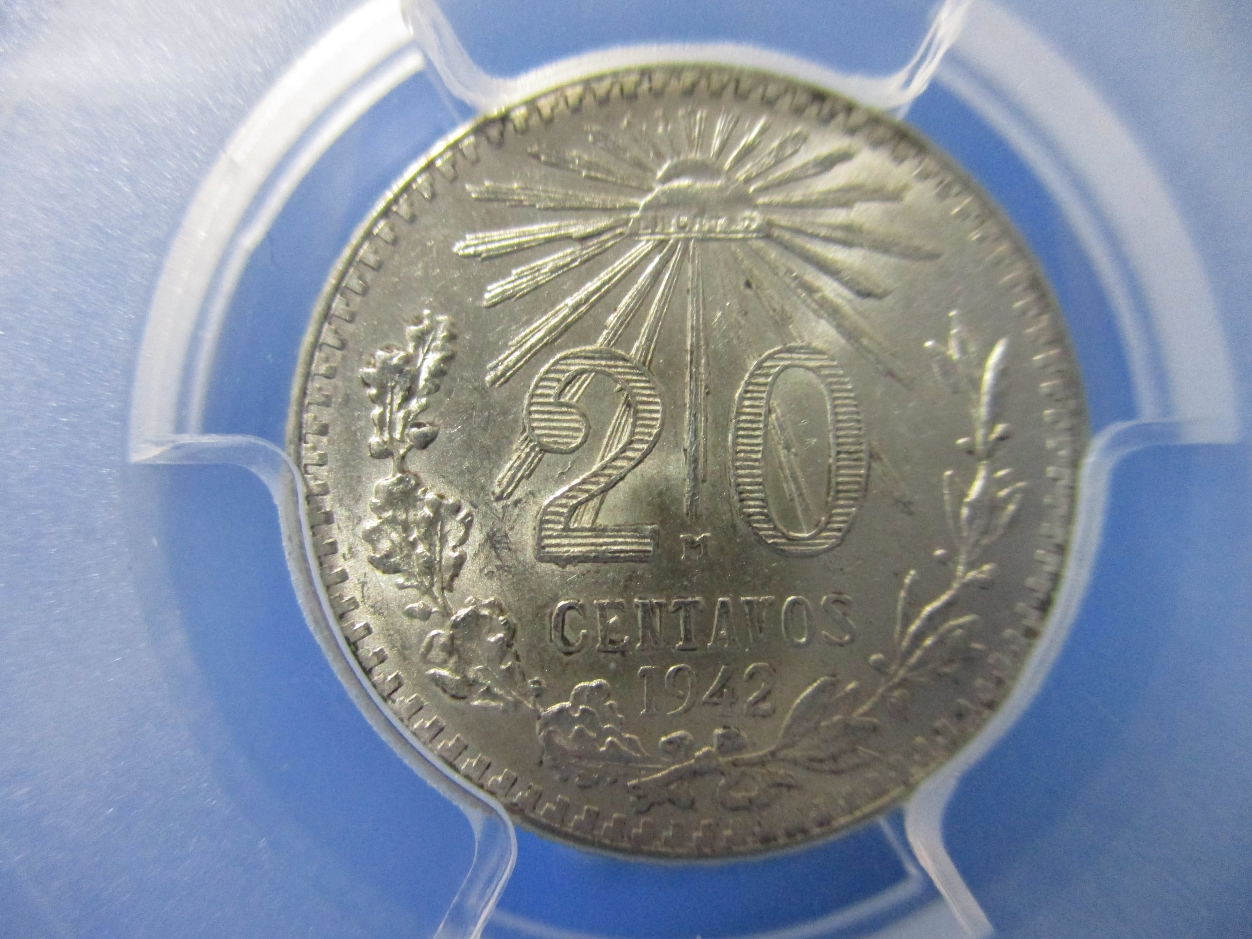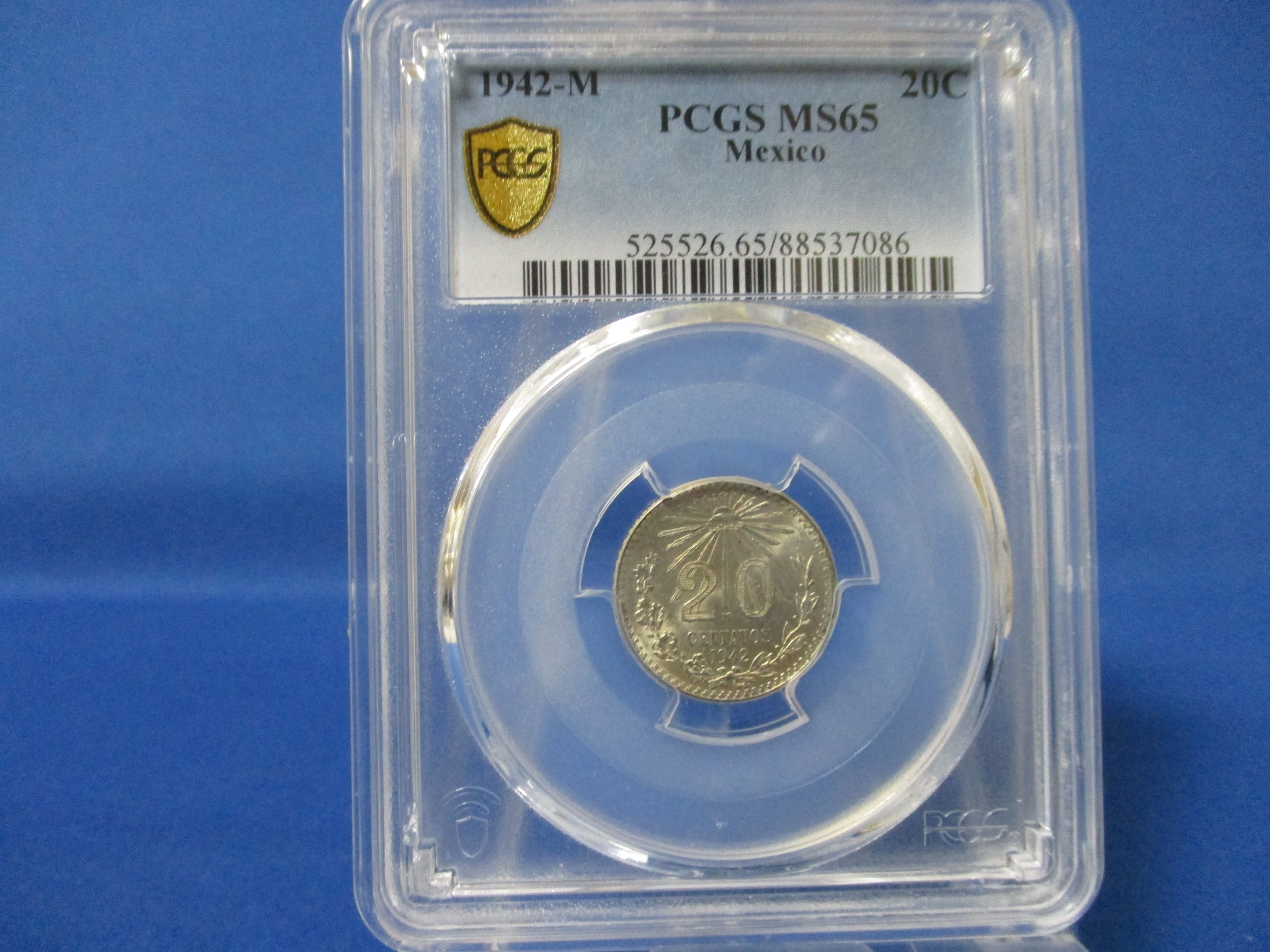 メキシコ 20センタボ銀貨☆1942年 /未使用/アンティークコイン/PCGS MS65/
