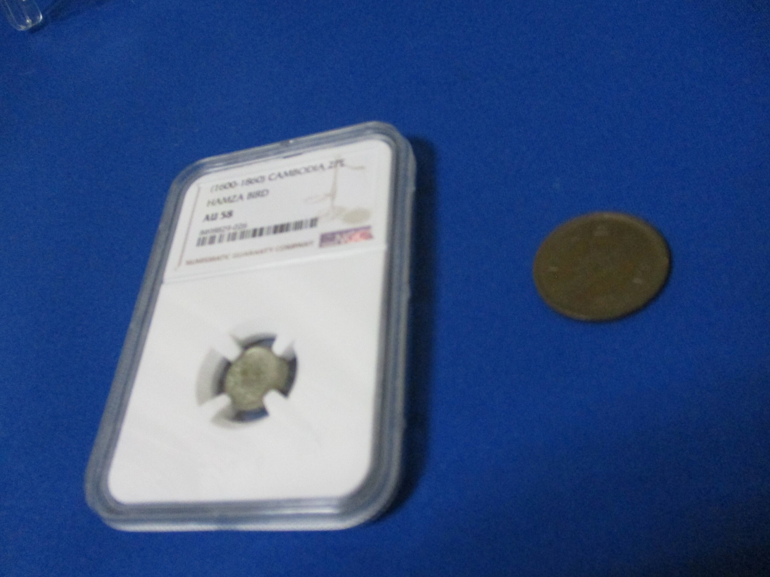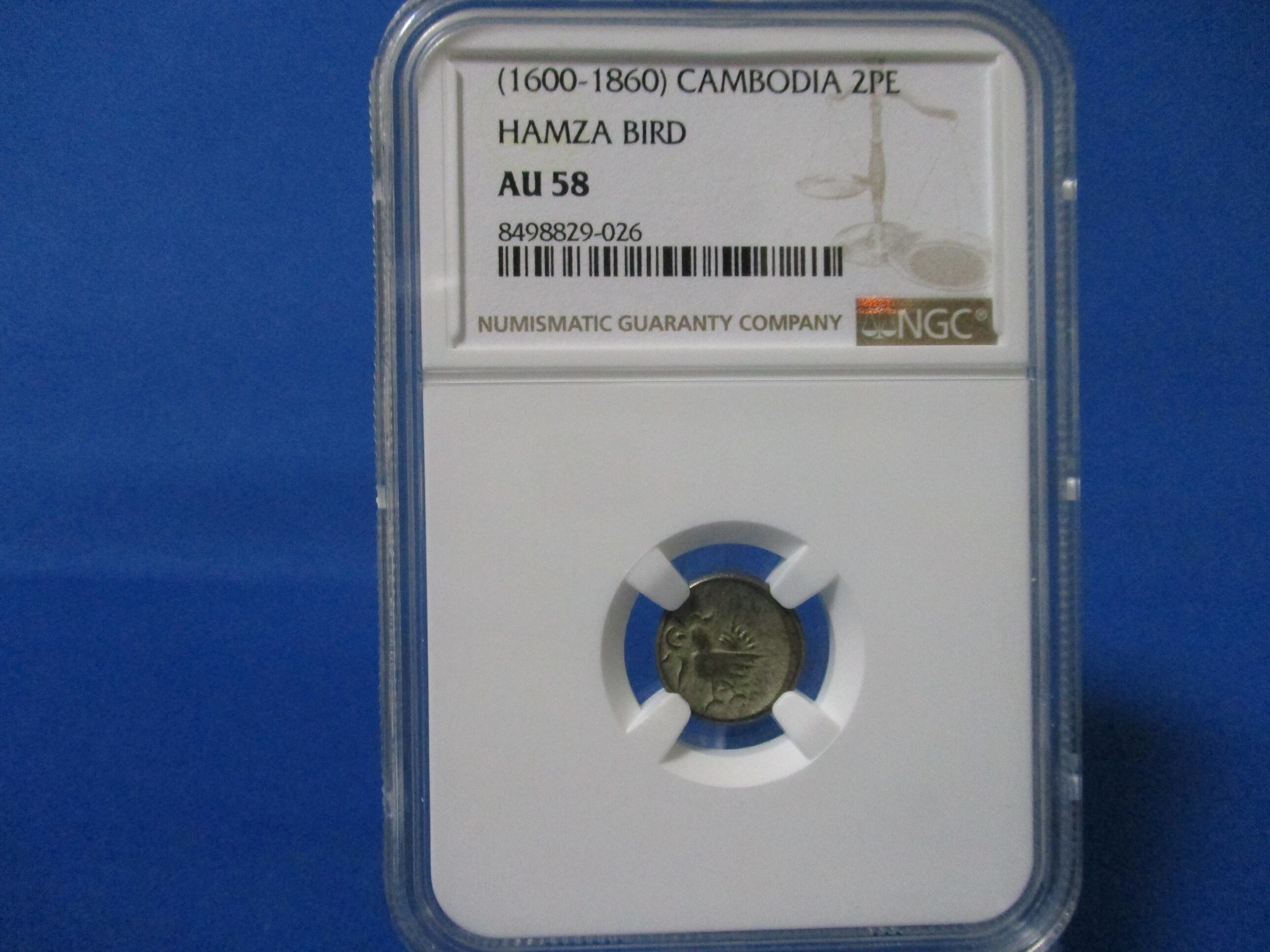 カンボジア 2ぺー銀貨☆1600~1860年/準未使用・極美品/神話鳥ハムサ/アンティークコイン/NGC AU58