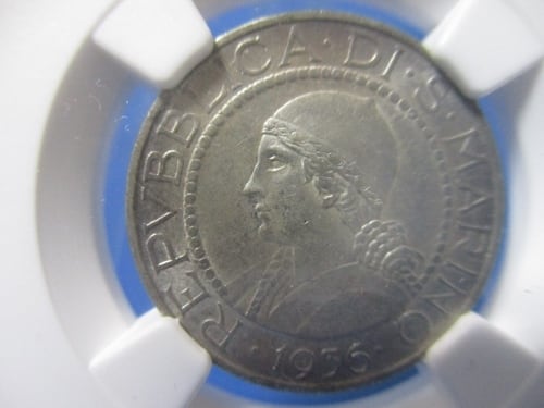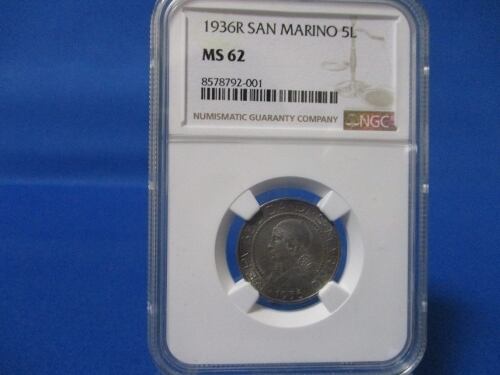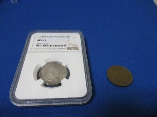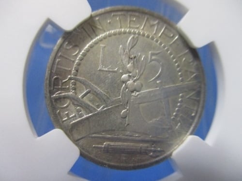 サンマリノ 5リラ銀貨☆1936年/未使用/NGC MS62/アンティークコイン