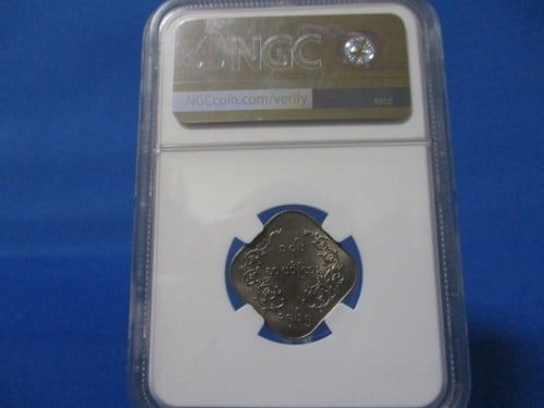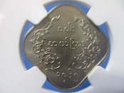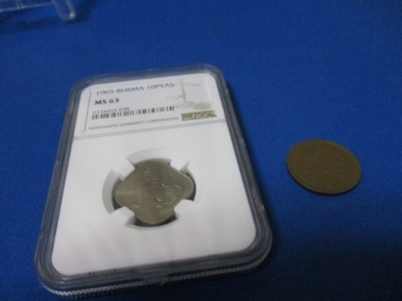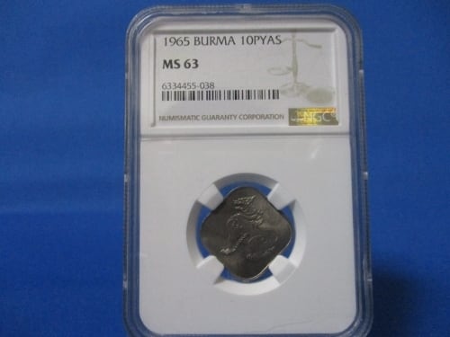 ビルマ(ミャンマー)10ピヤス硬貨☆1965年/未使用/獅子像/NGC MS63/