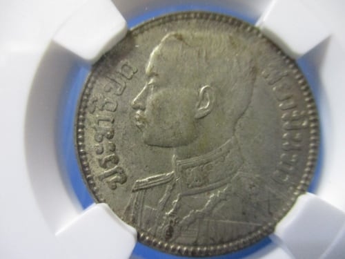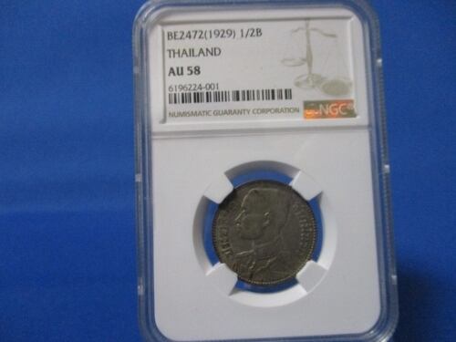 タイ 50サタン銀貨(1/2バーツ)☆1929年/準未使用・極美品/ラーマ7世/NGC AU58/アンティークコイン