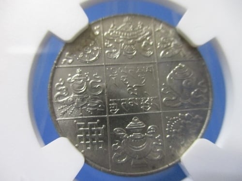 ブータン 1/2ルピー硬貨☆1950年/未使用/ジグメ・ワンチュク王/仏教画/NGC MS65/アンティークコイン