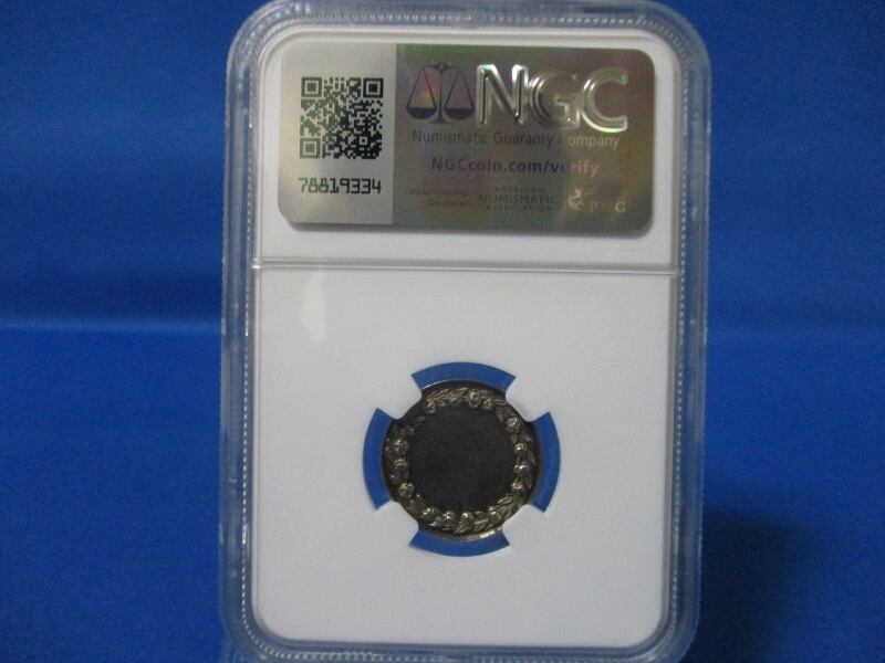 ちなみに、当メダルはエッジ(縁)部分に「手の表示(指差す手)」が刻印されておりますので1845~1860年に製造された物と判別出来ます(鑑定スラブケースに入っているので確認が難しいですが。)