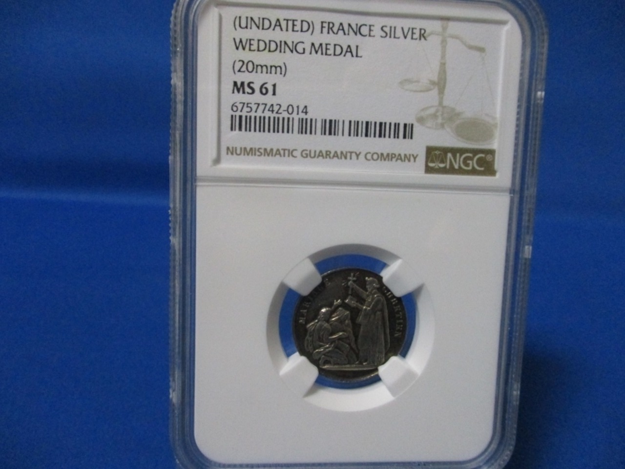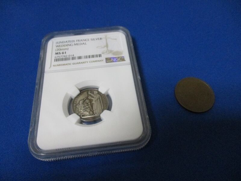 フランス 結婚メダル(銀製)☆1845年~/未使用/アンティークメダル/ウエディングメダル/シルバーメダル/NGC MS61/