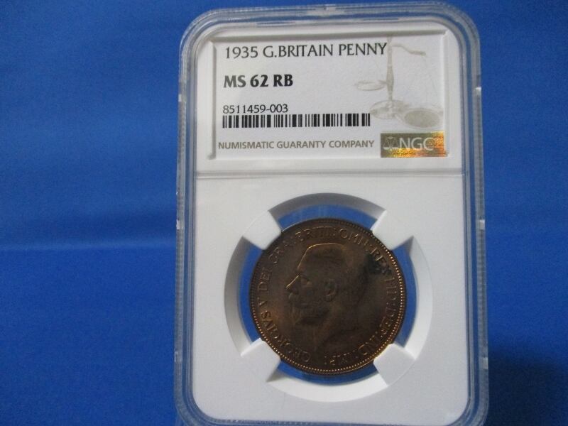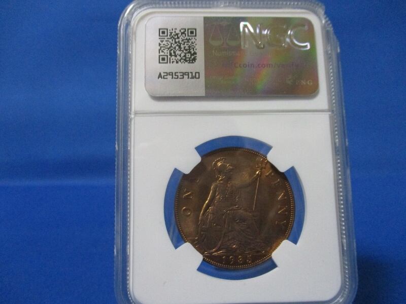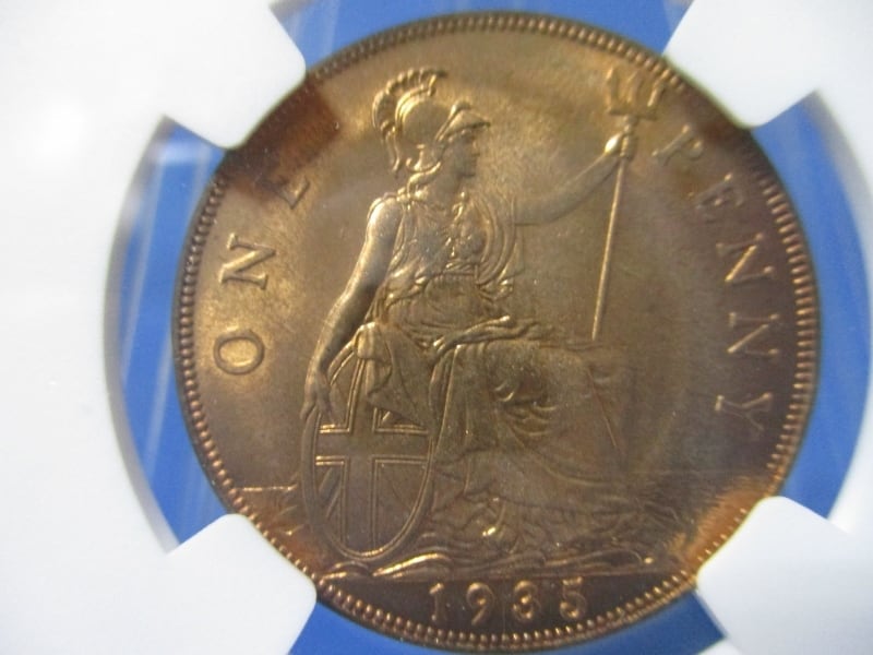 イギリス 1ペニー銅貨☆1935年/未使用/ジョージ5世/NGC MS62
