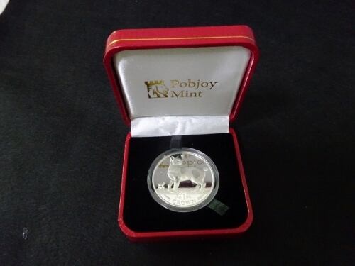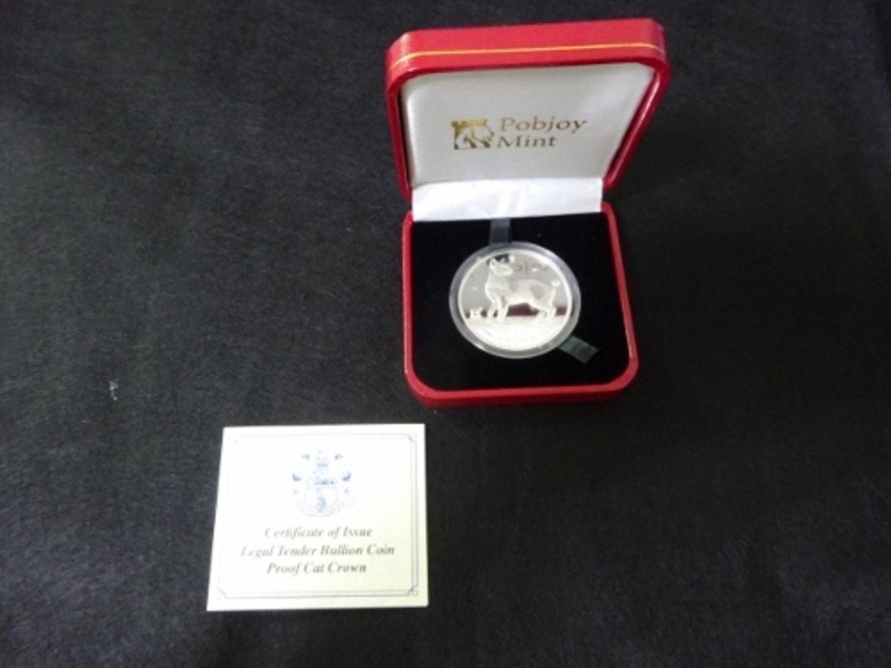 【未使用品】マン島 キャットコイン 1オンス プルーフ銀貨(ジャパニーズ・ボブテイル : 日本猫 専用ケース、証明書付き)