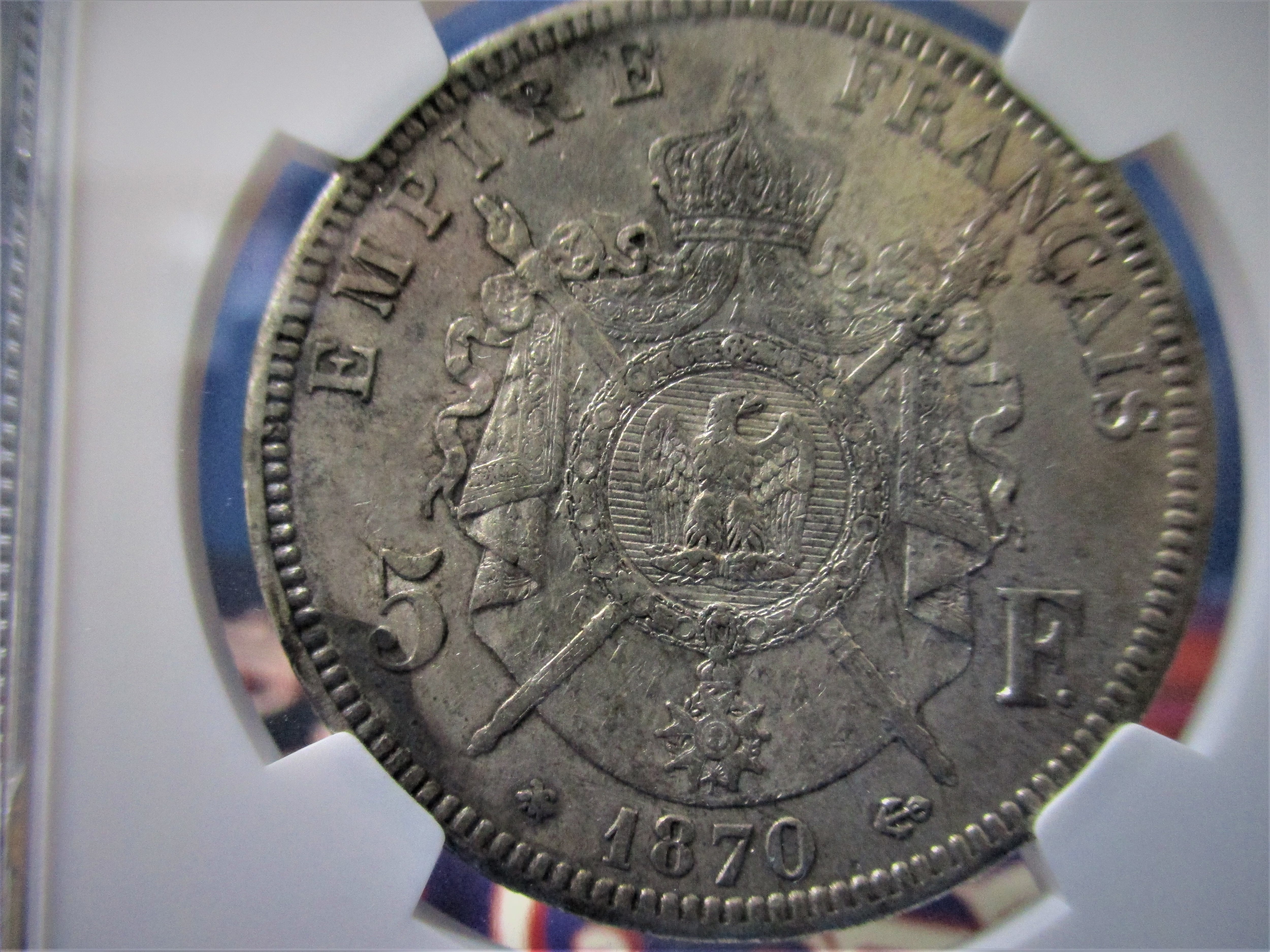 ナポレオン3世の5フラン銀貨は出来るだけ鑑定付きの物をお勧めします。