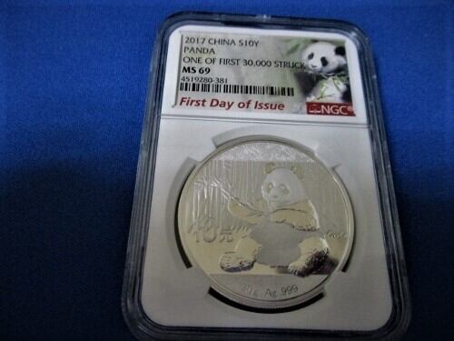当商品の2017年パンダ銀貨は世界トップレベルの鑑定会社であるNGC社にMS69の準最高評価の鑑定を受けております本物の銀貨となります。