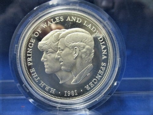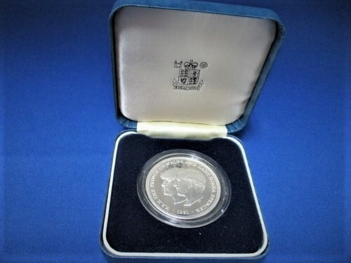 ダイアナ妃とチャールズ皇太子の御成婚を記念した銀貨です。