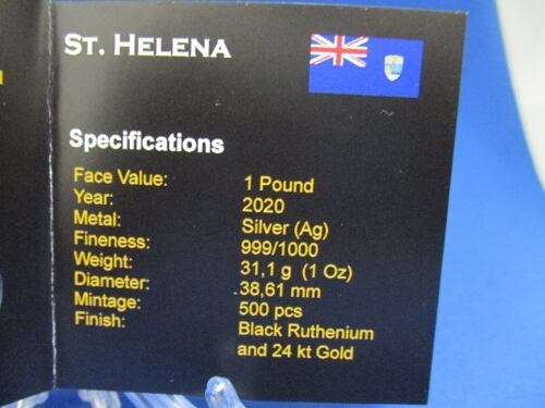 【限定 500枚】ウナとライオン 2020年 セントヘレナ 1ポンド銀貨(ゴールドブラックエンパイア版)/新品未使用