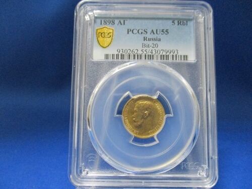 ロシア 5ルーブル金貨☆ニコライ2世/1898年/PCGS AU55/鑑定済・本物保証