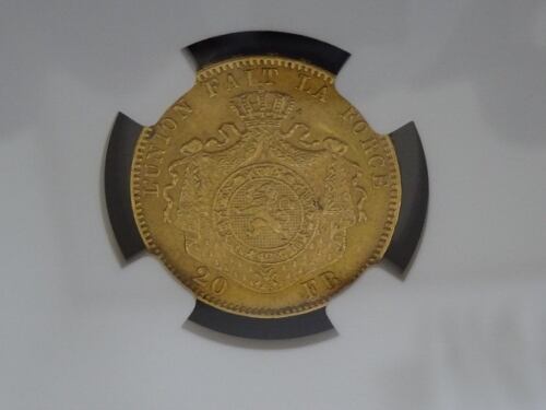 ベルギー 1877年 レオポルト2世 20フラン金貨【NGC MS 63 】