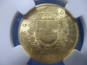イタリア20リラ金貨☆ヴィットーリオ・エマヌエーレ2世/1863年/NGC MS62/