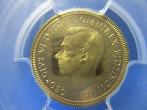 1937年に英国王立造幣局が発行したジョージ6世プルーフ金貨セット中の1枚です。