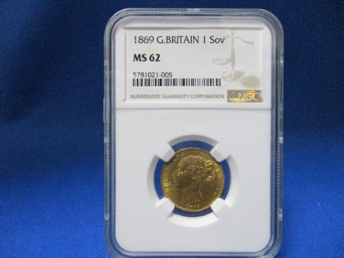 イギリス 1ソブリン金貨☆ヤング・ヴィクトリア女王/1869年/NGC MS62/