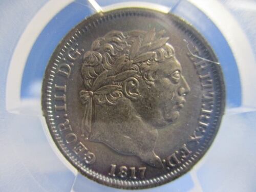 イギリス 1シリング銀貨☆ジョージ3世/1817年/準未使用/NGC AU58/美しいブルートーン/アンティークコイン/