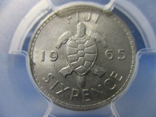 フィジー 6ペンス硬貨☆1965年/未使用/ウミガメ/エリザベス2世/長寿のシンボル/PCGS MS65/