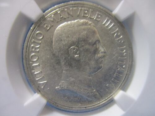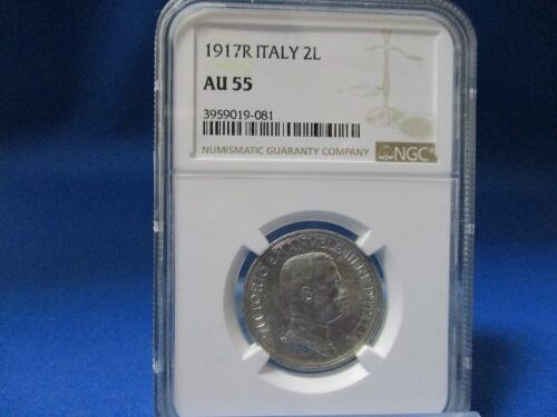 イタリア 2リラ銀貨☆1917年R/準未使用・極美品/クアドリガ/ヴィットリオ・エマヌエレ3世/NGC AU55/