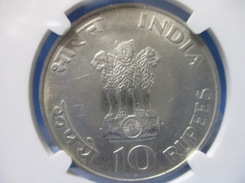 インド 10ルピー銀貨☆1969年/準未使用・極美品/ガンジー/NGC AU58/