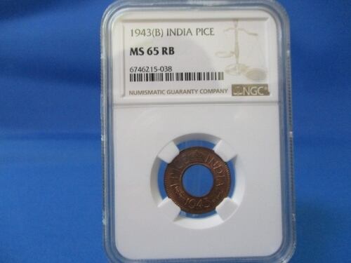 イギリス領インド 1パイス銅貨☆1943年(B)/未使用/NGC MS65RB/本物保証
