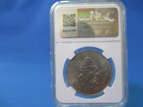 イギリス領バミューダ諸島 1クラウン銀貨☆1964年/未使用/エリザベス二世/NGC MS63/本物保証