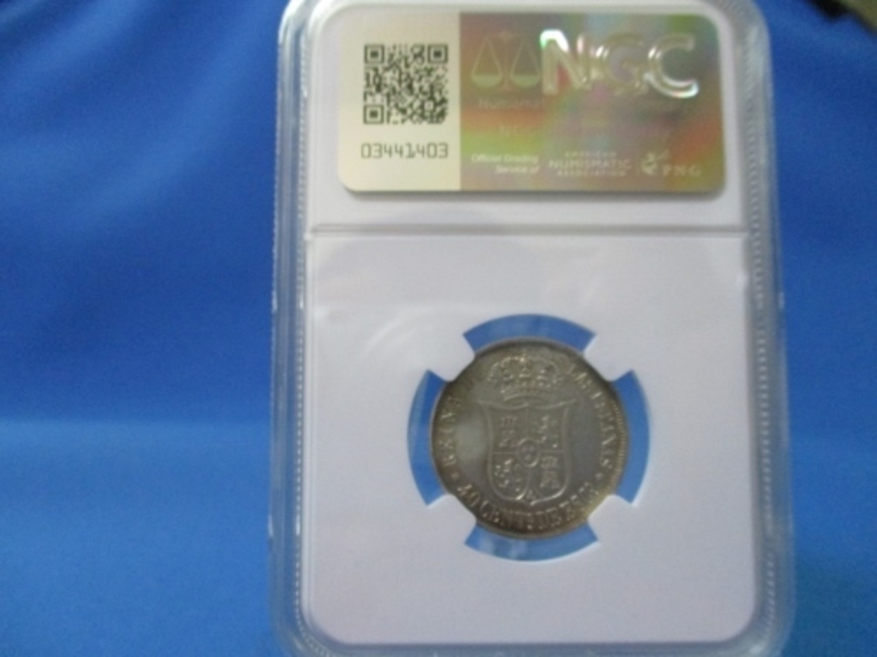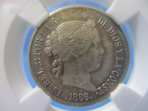 スペイン 40センチモス銀貨☆1866年/準未使用・極美品/イザベラ2世/NGC AU53/本物保証