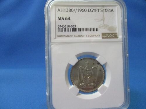 エジプト 10ピアストル銀貨☆1960年/未使用/UAR設立1周年/NGC MS64/本物保証