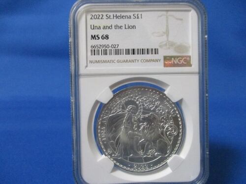 イギリス領セントヘレナ 1ポンド銀貨☆2022年/未使用/ウナとライオン/NGC MS68/本物保証