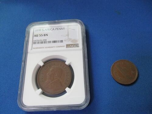 南アフリカ 1ペニー銅貨☆1898年/準未使用・極美品/クルーガー大統領/NGC AU55BN/本物保証
