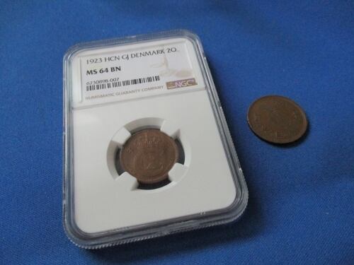 デンマーク 2オーレ硬貨☆1923年/未使用/クリスチャン10世/アンティークコイン/NGC MS64