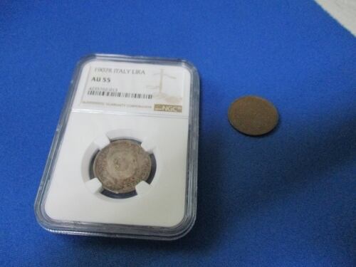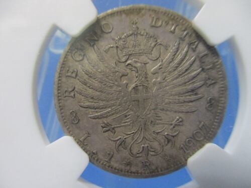 イタリア 1リラ銀貨☆1907年/準未使用/ヴィットーリオエマヌエーレ3世/アンティークコイン/NGC AU55/