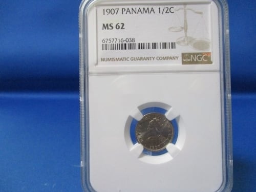 パナマ 1/2センテシモ硬貨☆1907年/未使用/バルボア/アンティークコイン/NGC MS62
