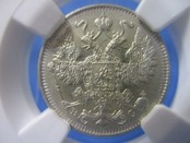 ロシア 15コペイカ銀貨☆1916年/未使用/ニコライ二世/アンティークコイン/NGC MS62