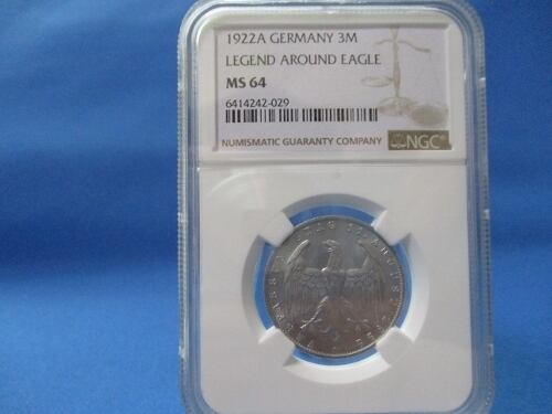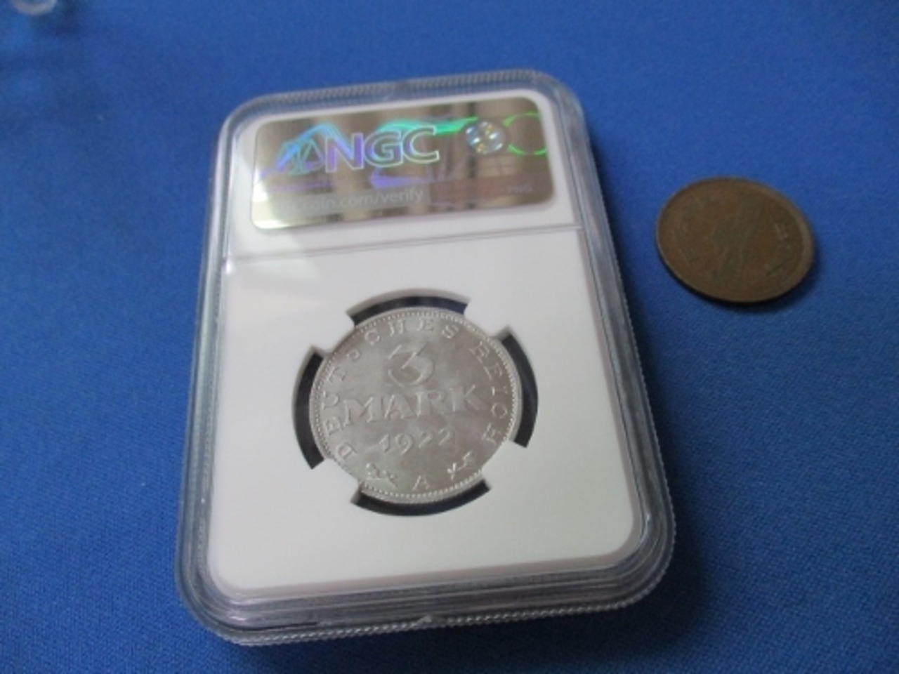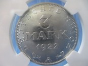 ドイツ 3マルク硬貨☆1922年/未使用/アンティークコイン/NGC MS64