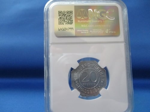 ドイツ ニュルンベルク都市景観 20ペニヒ硬貨☆1920年/未使用/美徳の噴水/アンティークコイン/NGC MS64