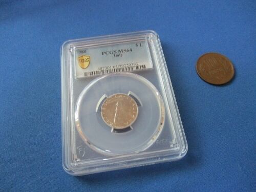 イタリア 5リラ硬貨☆1980年/未使用/舵とイルカ/アンティークコイン/PCGS MS64